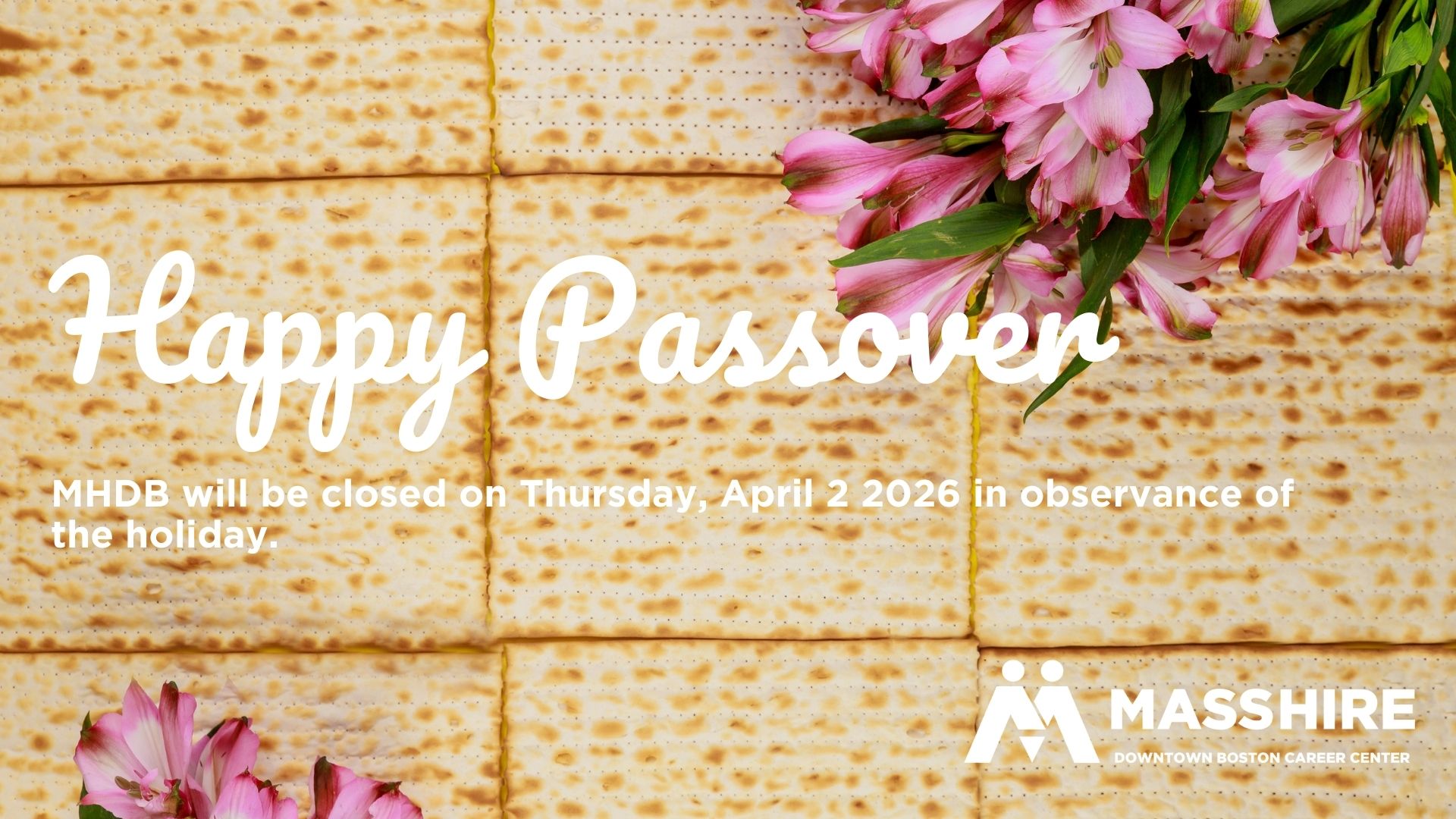 MHDB will be closed on Thursday, April 2nd in observance of Passover. We will resume regular business hours on April 3rd, at 9:00 AM. Masshire Downtown Boston is currently offering services BY APPOINTMENT ONLY both virtually and in-person. |